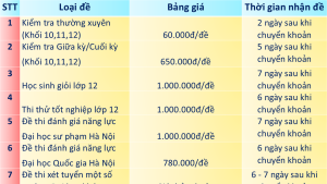 • Chúng tôi sẽ chỉ thực hiện biên soạn tài liệu đề thi khi đã nhận được chuyển khoản của các thầy cô.