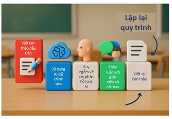 Để sử dụng AI một cách hiệu quả, học sinh cần được hướng dẫn theo quy trình viết có cấu trúc, đảm bảo tính sở hữu cá nhân đối với sản phẩm học tập. Chẳng hạn, học sinh có thể được yêu cầu viết bản thảo đầu tiên hoàn toàn độc lập, không sử dụng AI. Sau đó, các em có thể dùng AI để gợi ý hoặc nhận phản hồi, rồi tự đánh giá và thảo luận lại với giáo viên hoặc bạn học. Cuối cùng, học sinh nên viết lại bản thảo thứ hai mà không sử dụng AI. Cách làm này giúp AI đóng vai trò công cụ hỗ trợ chứ không thay thế tư duy phản biện hoặc quá trình viết chân thực. Phương pháp “Brain-to-LLM” này được chứng thực bởi nghiên cứu của MIT (Kosmyna và cộng sự, 2025), chỉ ra rằng lợi ích nhận thức lớn nhất đạt được khi người học tự thực hiện nhiệm vụ trước, rồi mới sử dụng AI để hoàn thiện. Phát hiện này nhấn mạnh giá trị sư phạm của việc khuyến khích học sinh tư duy và viết độc lập trước khi nhận hỗ trợ từ AI.