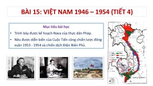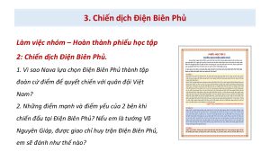 Trình bày được kế hoạch Nava của thực dân Pháp. Nêu được diễn biến của Cuộc Tiến công chiến lược đông xuân 1953 - 1954 và chiến dịch Điện Biên Phủ.