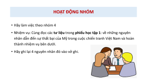 • Chỉ ra được những nguyên nhân thất bại của Mỹ trong cuộc chiến tranh Việt Nam.
