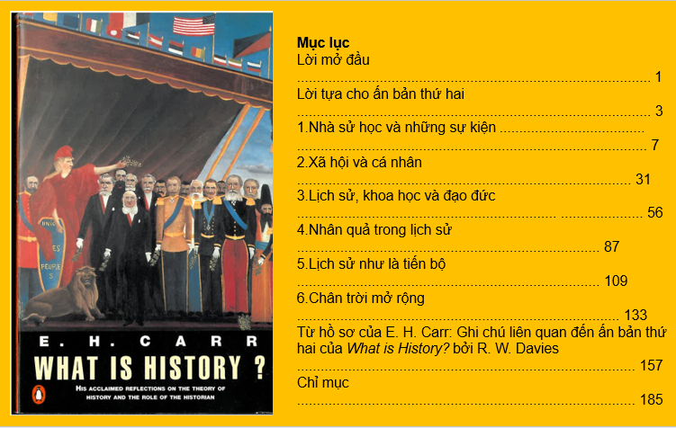 E.H. Carr, một trong những nhà sử học nổi bật của thế kỷ XX, đã để lại dấu ấn sâu sắc trong giới nghiên cứu lịch sử bằng tác phẩm What is History? (xuất bản lần đầu năm 1961). Cuốn sách, vốn là tập hợp các bài giảng tại Đại học Cambridge, đã trở thành một trong những công trình kinh điển đặt nền móng cho các cuộc tranh luận về bản chất của lịch sử và phương pháp luận trong sử học hiện đại. Với dung lượng không quá dài, nhưng tư tưởng trong What is History? mở ra những góc nhìn mới, thách thức nhiều quan niệm truyền thống và khơi gợi tranh luận kéo dài đến tận ngày nay.