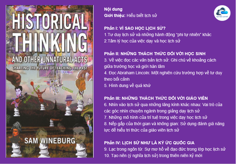 Cuốn Historical Thinking and Other Unnatural Acts của Sam Wineburg là một trong những công trình kinh điển về phương pháp dạy và học lịch sử. Điểm nổi bật của sách là cách tác giả khẳng định tư duy lịch sử không phải là điều “tự nhiên”, mà là một kỹ năng cần được hình thành thông qua giáo dục có chủ đích. Wineburg chỉ ra rằng, con người thường tiếp cận quá khứ với những định kiến, sự mơ hồ đạo đức và lối suy nghĩ hiện tại chủ nghĩa. Chính vì vậy, việc rèn luyện tư duy lịch sử đòi hỏi học sinh phải học cách đặt sự kiện vào bối cảnh, phân tích bằng nhiều lăng kính và chấp nhận sự phức tạp của lịch sử.